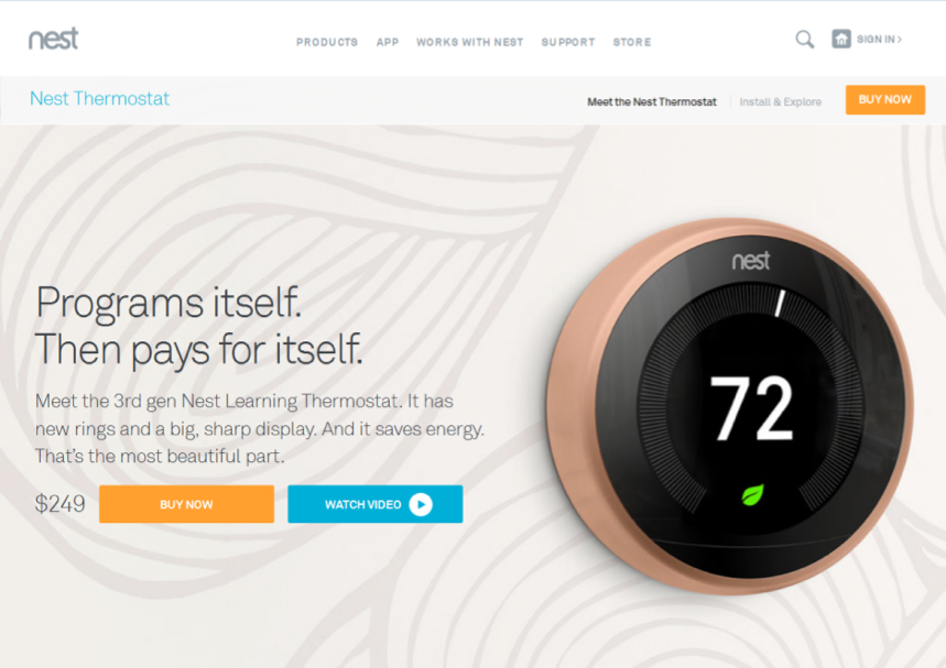 Nest makes homes a delight to live in by creating technology that solves our everyday problems. The Nest thermostat has made use of the latest available technology of Artificial Intelligence and solved one of the major problems of home-owners – escalating energy bills! The thermostat learns and programs itself by adapting to temperature needs.